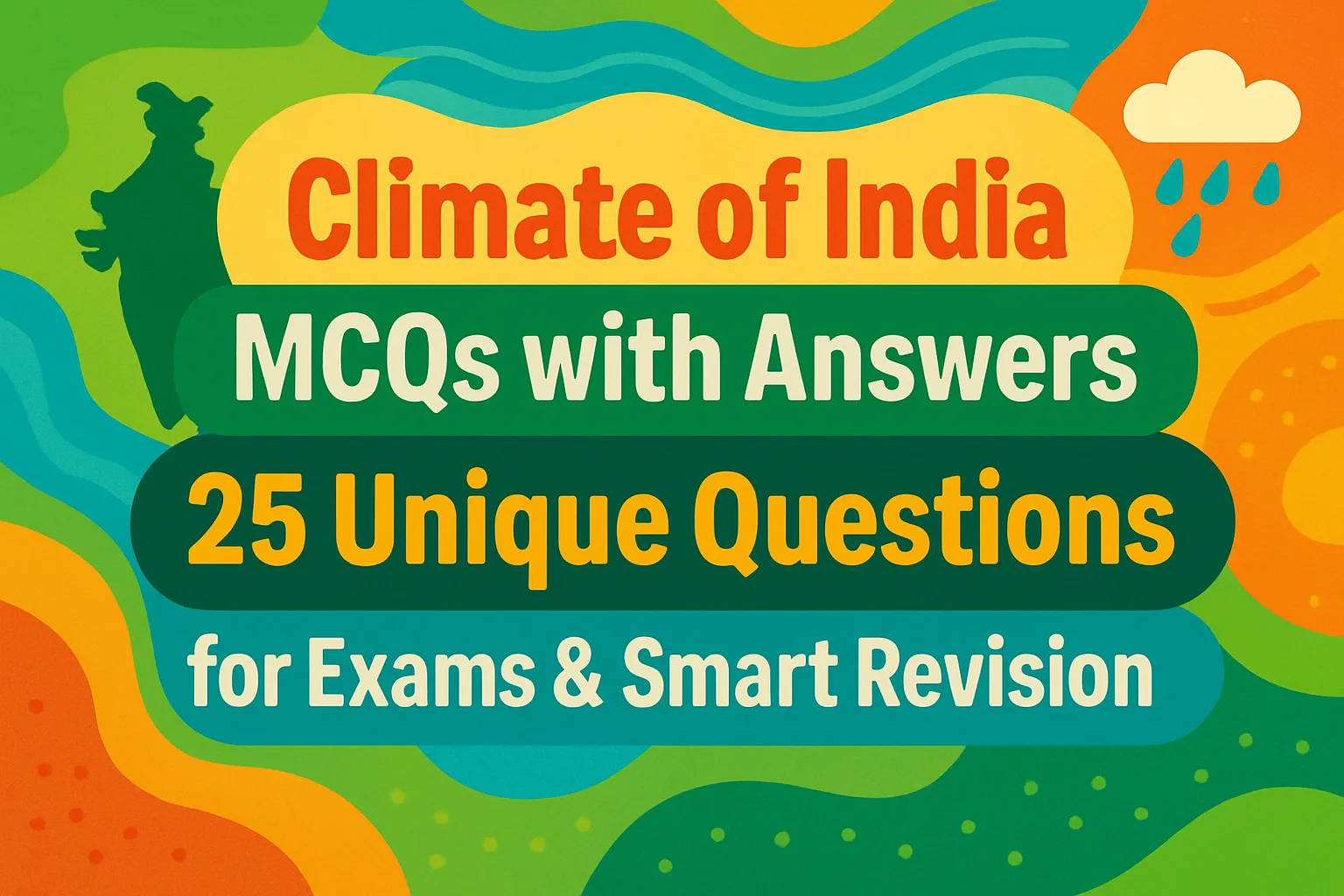 To study the geography of India, climate is an important topic to be understood. India has 4 main types of climates: summer, winter, monsoon, and retreating monsoon. The climate of India also affects its economy. Questions are asked from this topic in all competitive exams like JKSSB, JKPCS, and UPSC. Questions are asked about this topic on rainfall, monsoon winds, temperature, seasons, and natural factors of climate. We have prepared 25 unique MCQs on the climate of India with answers. Each question is written in very simple words